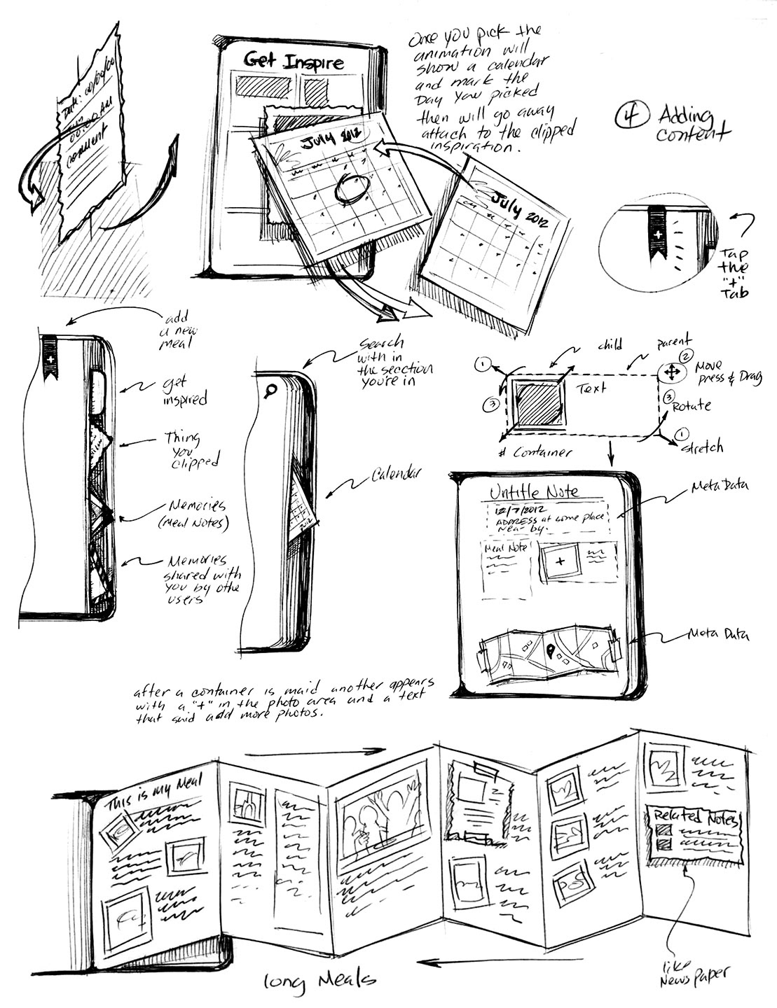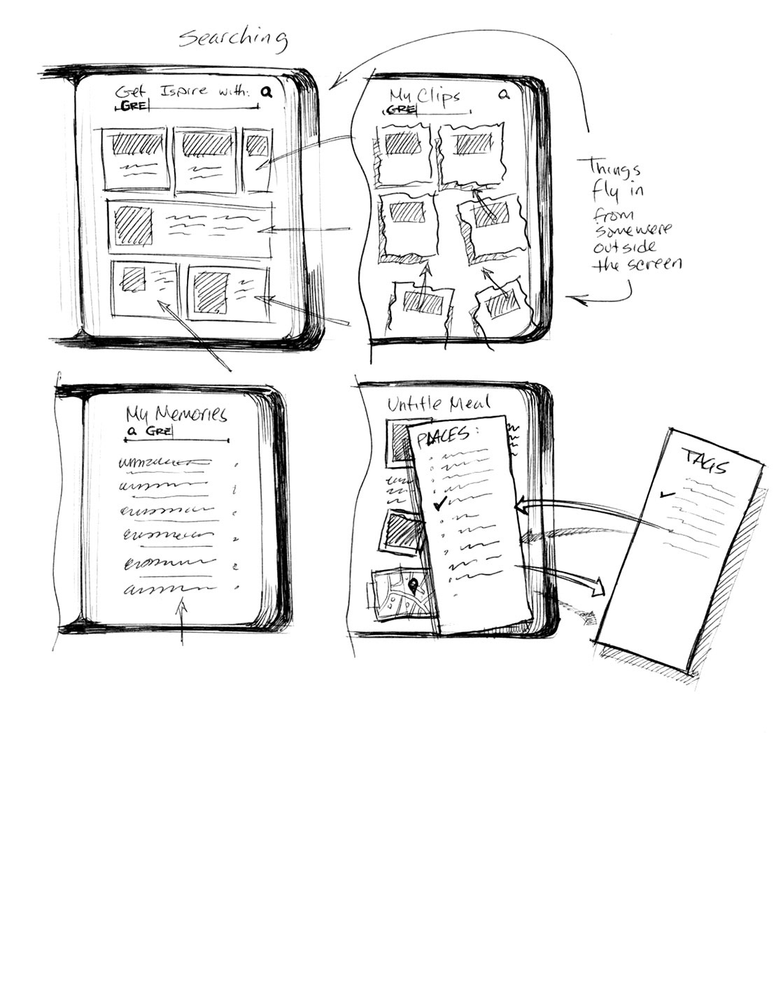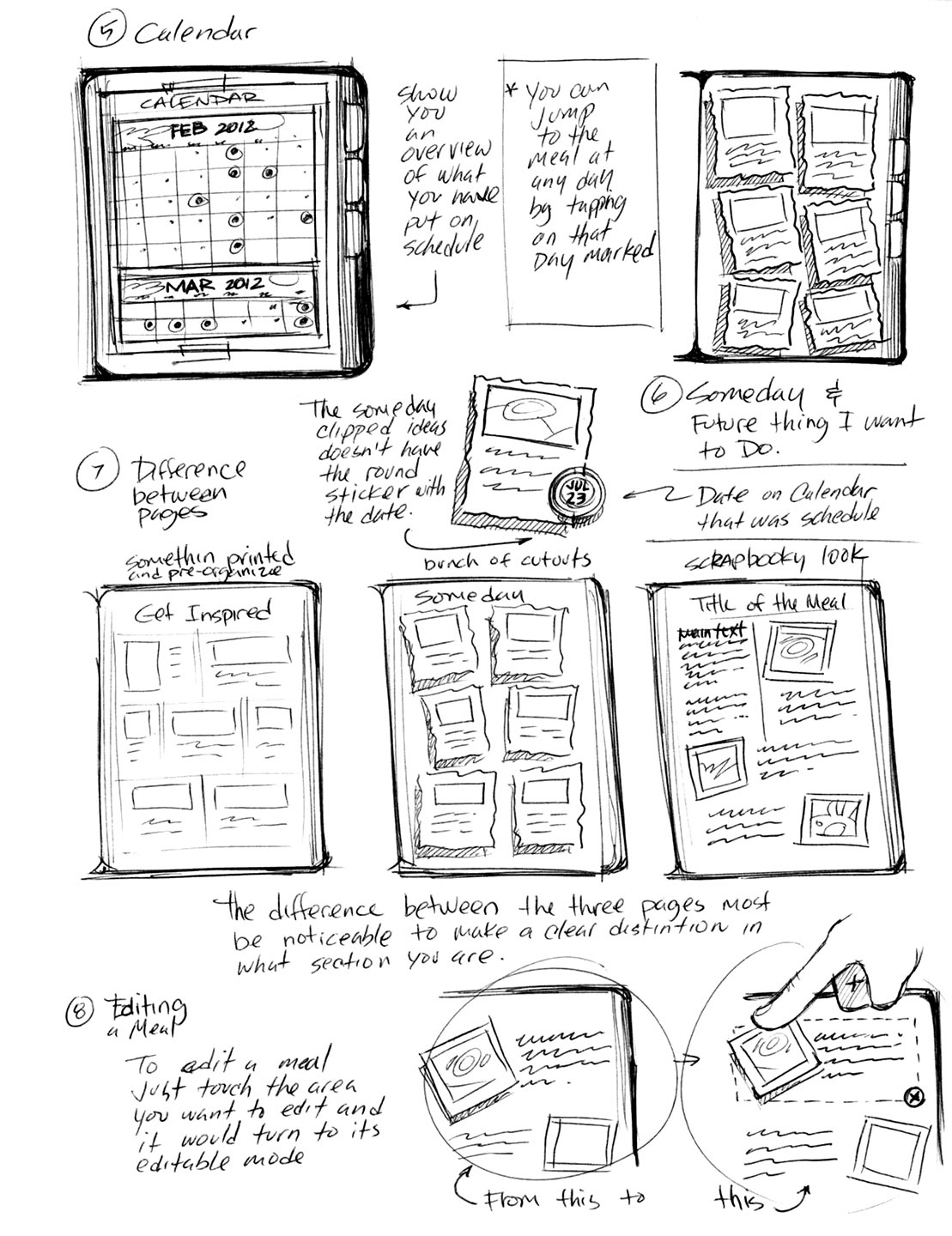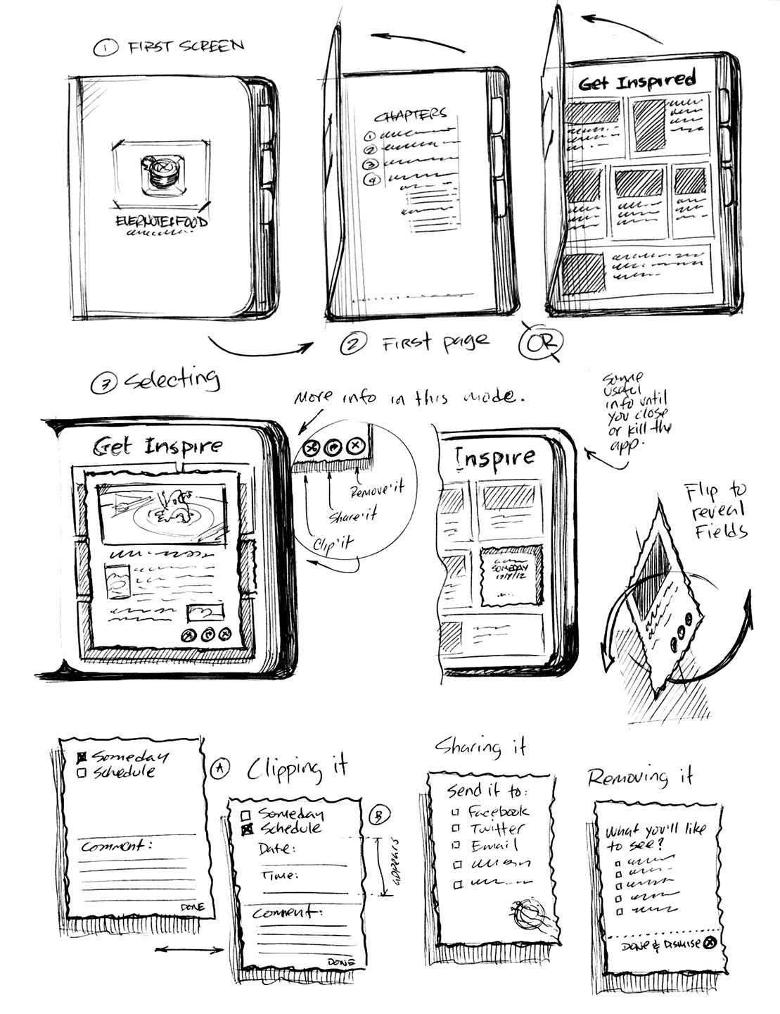 Initial storyboarding output for Evernote Food tablet app.